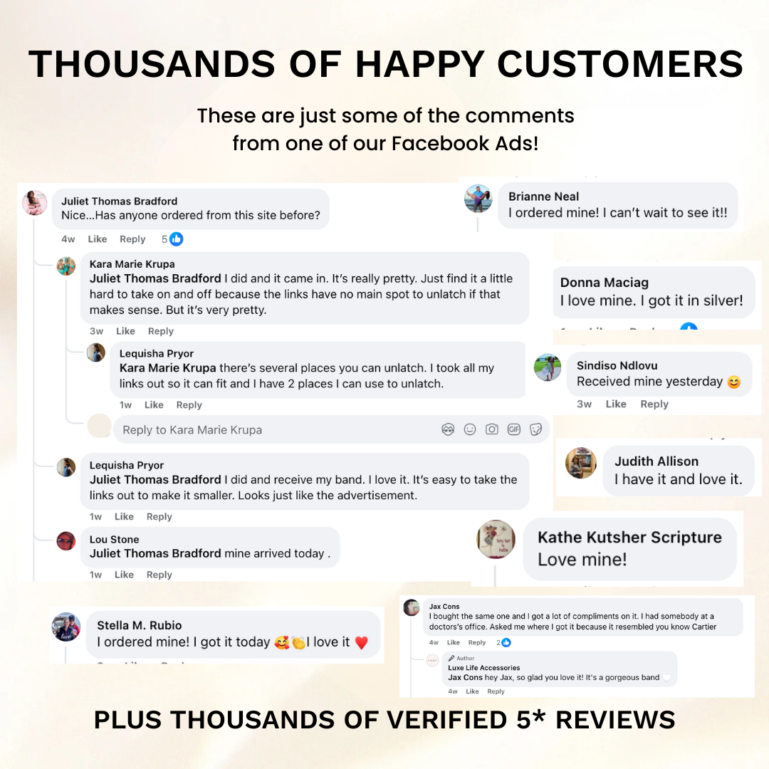 Because we don’t just sell Apple Watch bands - we turn your watch into jewelry. Unlike cheap bands that fade, tarnish, or break, every Luxe Life band is crafted from premium stainless steel, backed by a lifetime color warranty, and designed to elevate your style instantly. With over 10,000 bands sold and thousands of glowing reviews, our customers choose Luxe Life because they know they’ll get lasting quality, timeless elegance, and a band that feels as good as it looks.